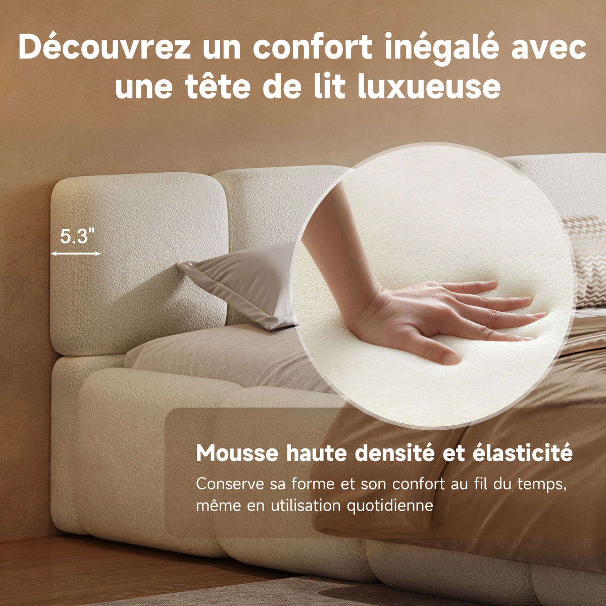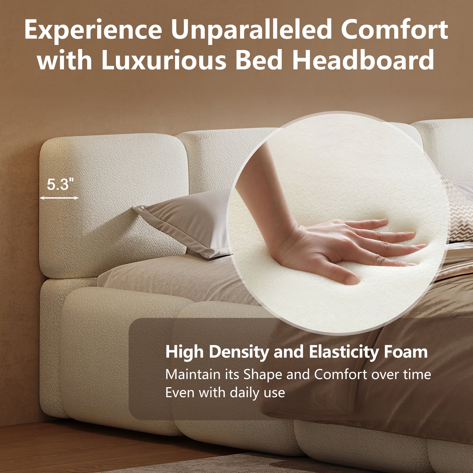 - 【Classic Versatile】:Whether your decor is modern, minimalist, or eclectic, its timeless design and neutral boucle fabric blend seamlessly into any bedroom, creating a versatile centerpiece.