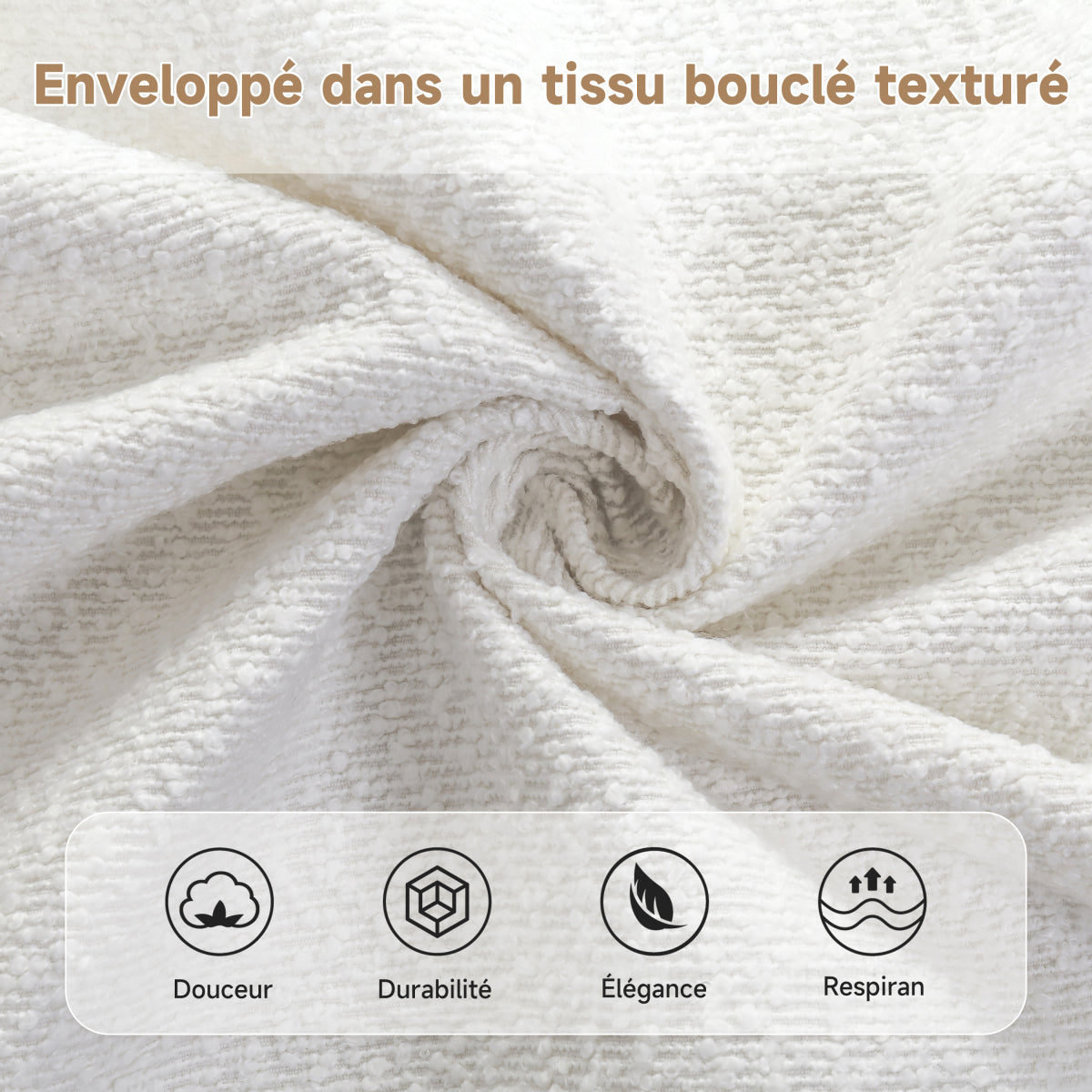 - 【Luxurious Fabric】:Indulge in the luxurious, enveloping feel of incredibly soft and refined boucle fabric.It not only provides unparalleled comfort, but also transforms any space into a refined and warm haven with its elegant texture.
